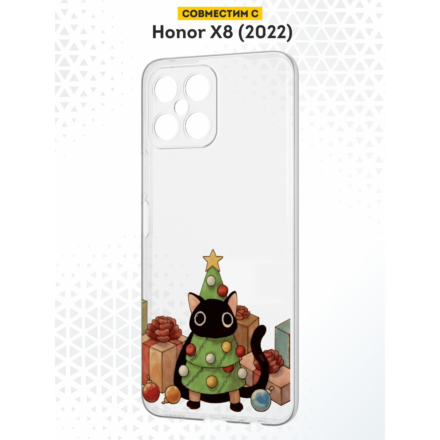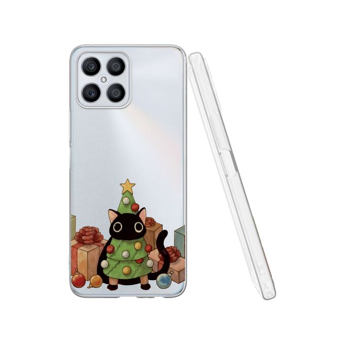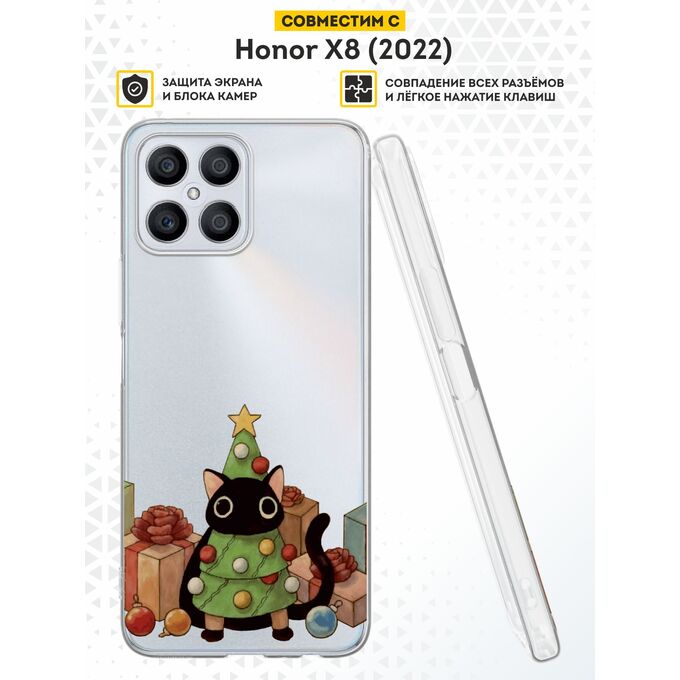 Силиконовый чехол DesignOnCase для Honor X8 (Хонор Х8), с принтом Новогодний, Черный кот, Подарок, Елка