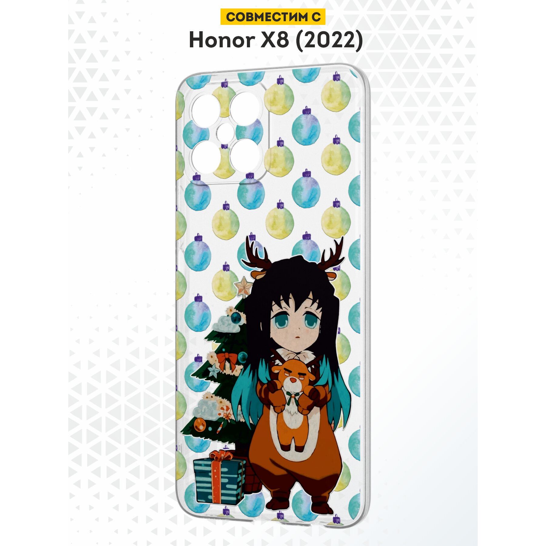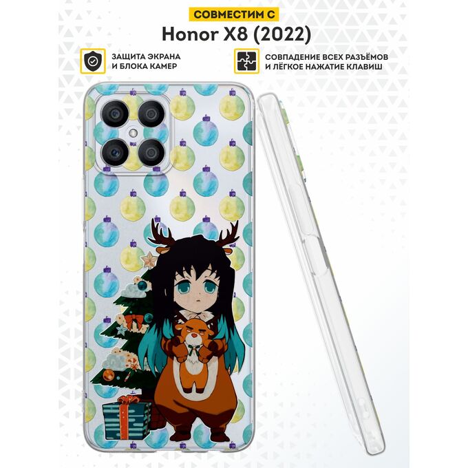 Силиконовый чехол DesignOnCase для Honor X8 (Хонор Х8), с принтом Новогодний, Demon Slayer, Аниме