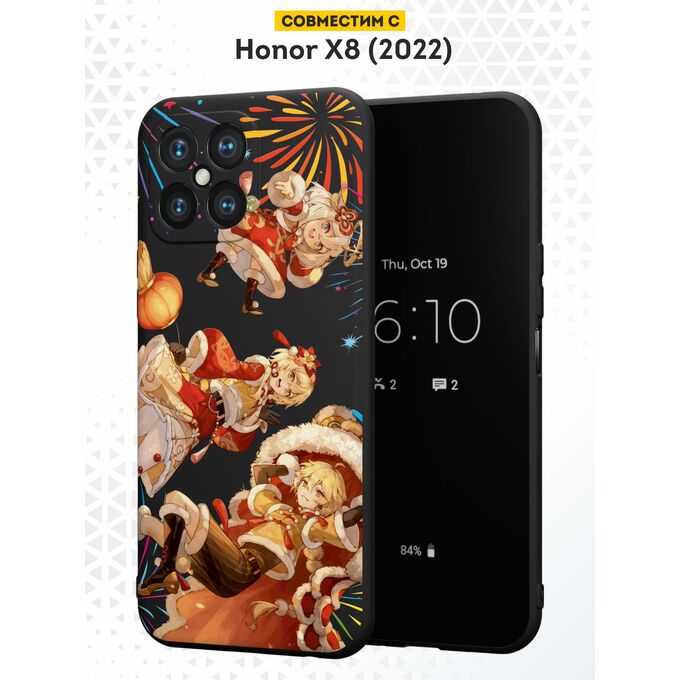Силиконовый чехол DesignOnCase для Honor X8 (Хонор Х8), с принтом Новогодний, Геншин импакт