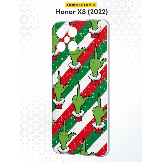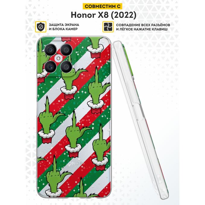Силиконовый чехол DesignOnCase для Honor X8 (Хонор Х8), с принтом Новогодний, Гринч, Жесты