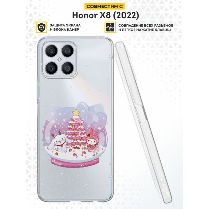 Силиконовый чехол DesignOnCase для Honor X8 (Хонор Х8), с принтом Новогодний, Хеллоу Китти, Мелоди