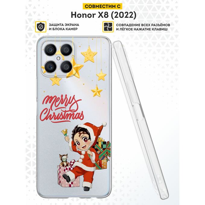 Силиконовый чехол DesignOnCase для Honor X8 (Хонор Х8), с принтом Новогодний, Клинок рассекающий демонов, Аниме