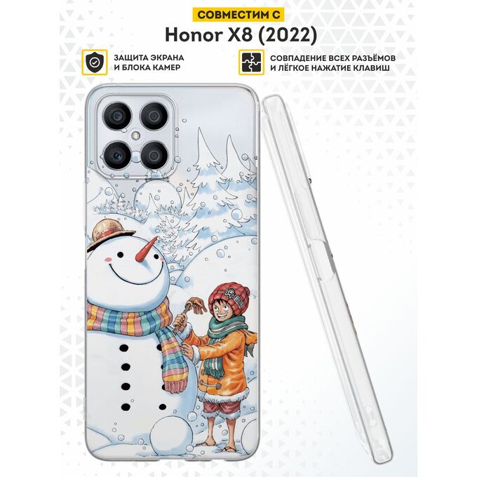 Силиконовый чехол DesignOnCase для Honor X8 (Хонор Х8), с принтом Новогодний, Луфи, Ван Пис, Аниме