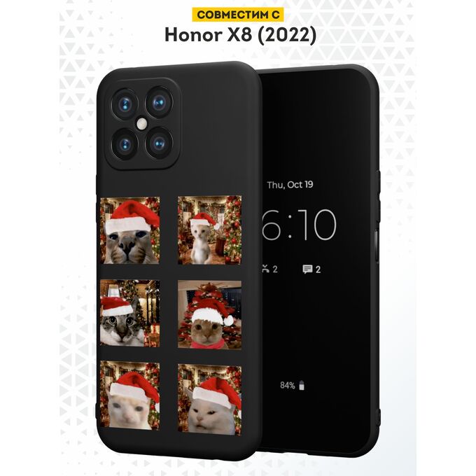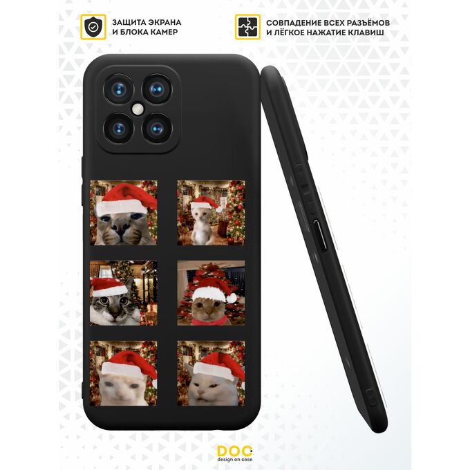 Силиконовый чехол DesignOnCase для Honor X8 (Хонор Х8), с принтом Новогодний, Мемные коты
