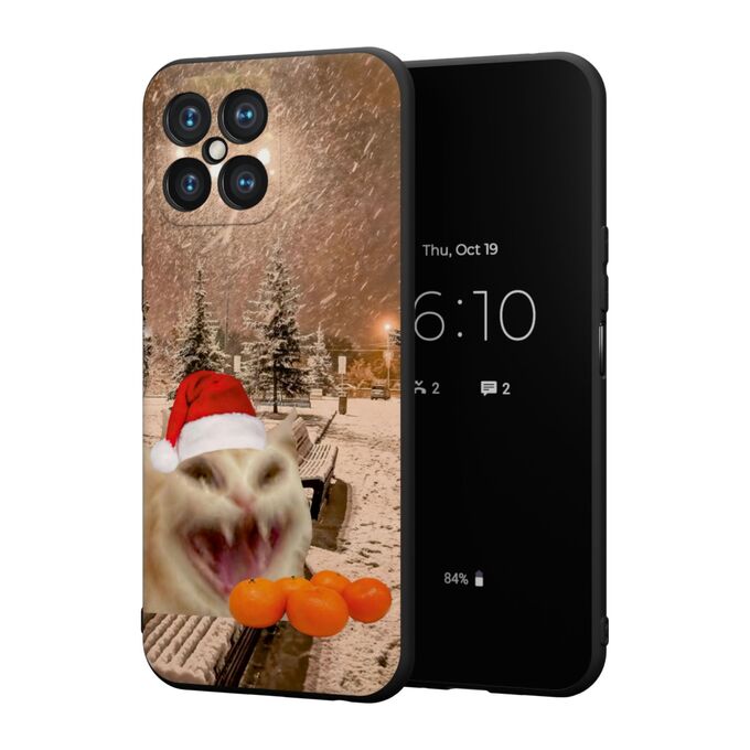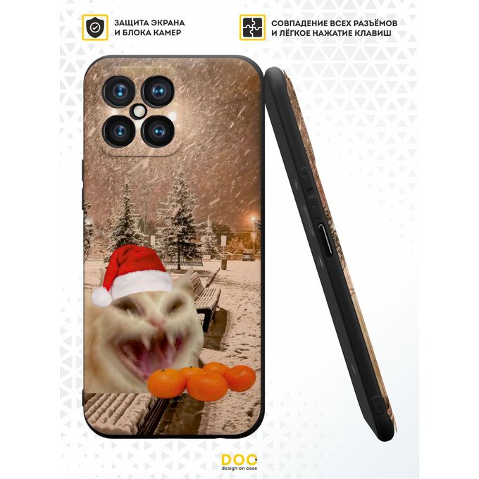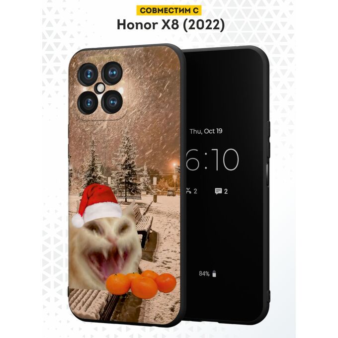 Силиконовый чехол DesignOnCase для Honor X8 (Хонор Х8), с принтом Новогодний, Мемный кот, Мандарины