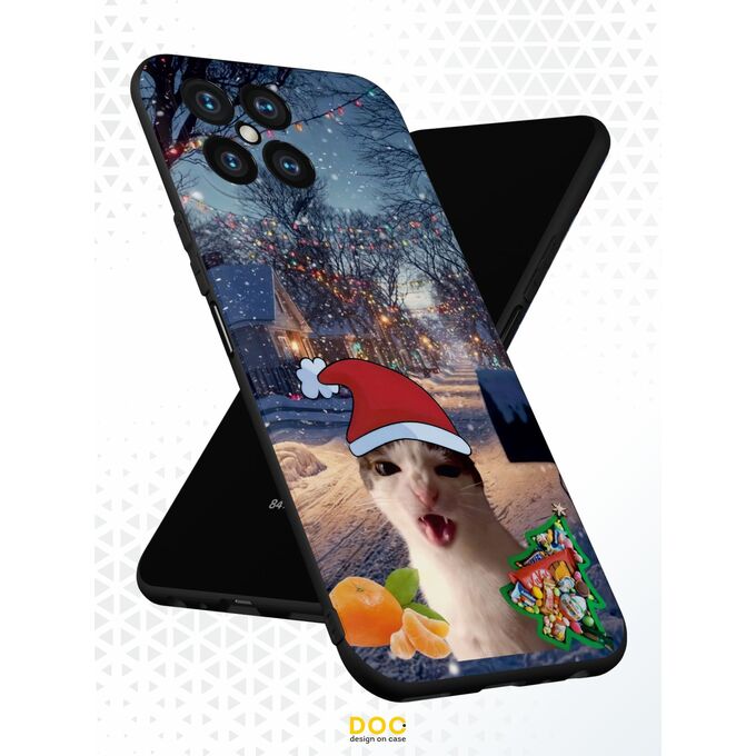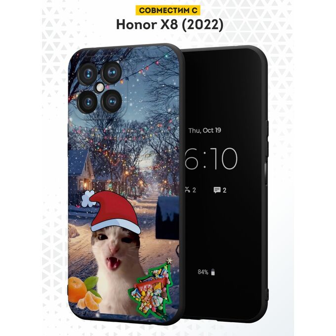 Силиконовый чехол DesignOnCase для Honor X8 (Хонор Х8), с принтом Новогодний, Мемный кот, Мандарины