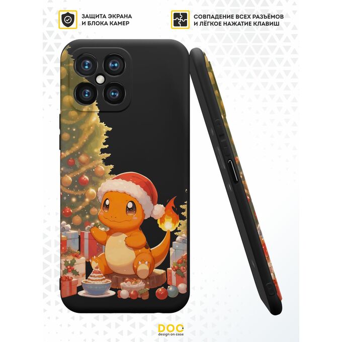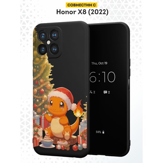 Силиконовый чехол DesignOnCase для Honor X8 (Хонор Х8), с принтом Новогодний, Покемоны, Чермандер