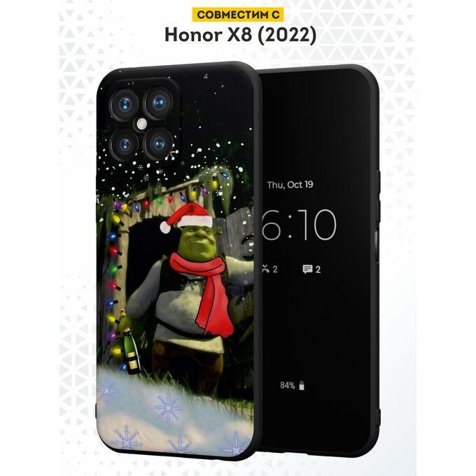 Силиконовый чехол DesignOnCase для Honor X8 (Хонор Х8), с принтом Новогодний, Шрек