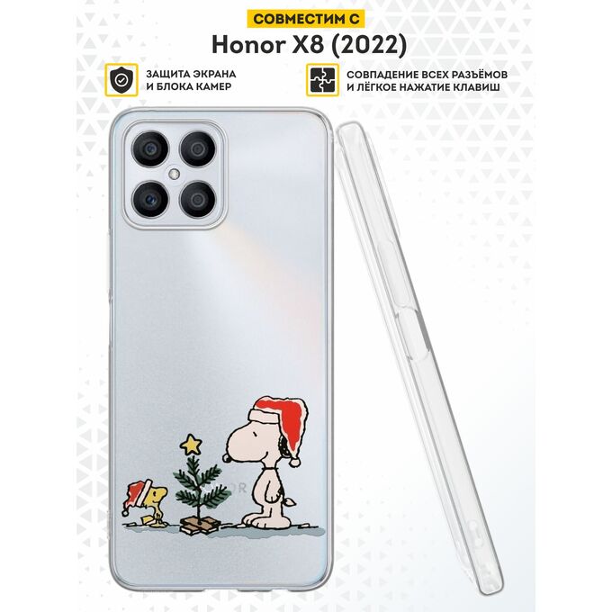 Силиконовый чехол DesignOnCase для Honor X8 (Хонор Х8), с принтом Новогодний, Снупи, Snoopy, Мультик
