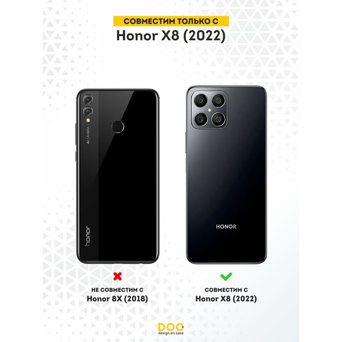 Чехол для смартфона Honor X8 - неотъемлемый аксессуар каждого современного человека. Премиальные износостойкие краски и лаки, качественные материалы изделия, японское оборудование и контроль качества производства - это то, что позволяет нам выгодно выделяться среди конкурентов и производить не только красивые, но тактильно приятные чехлы для Хонор Х8, которые долгое время не теряют первоначального вида.