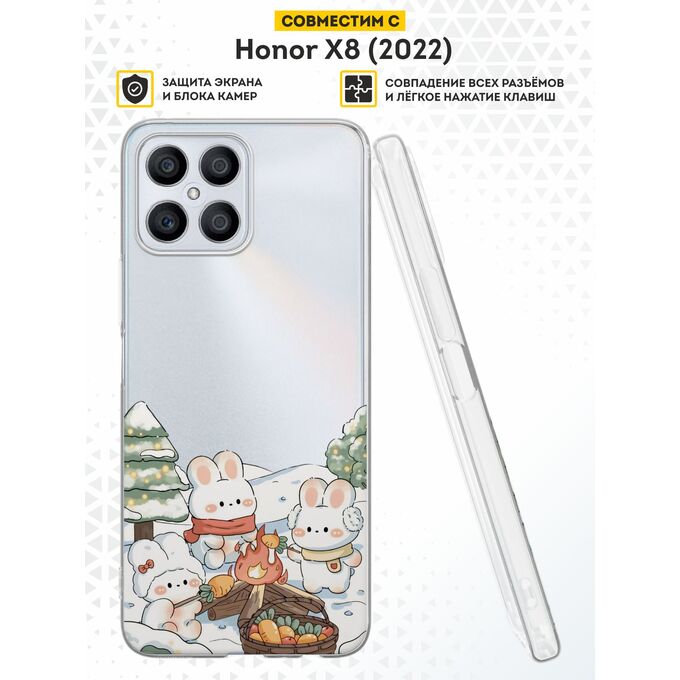 Силиконовый чехол DesignOnCase для Honor X8 (Хонор Х8), с принтом Новогодний, Зайцы, Кролики