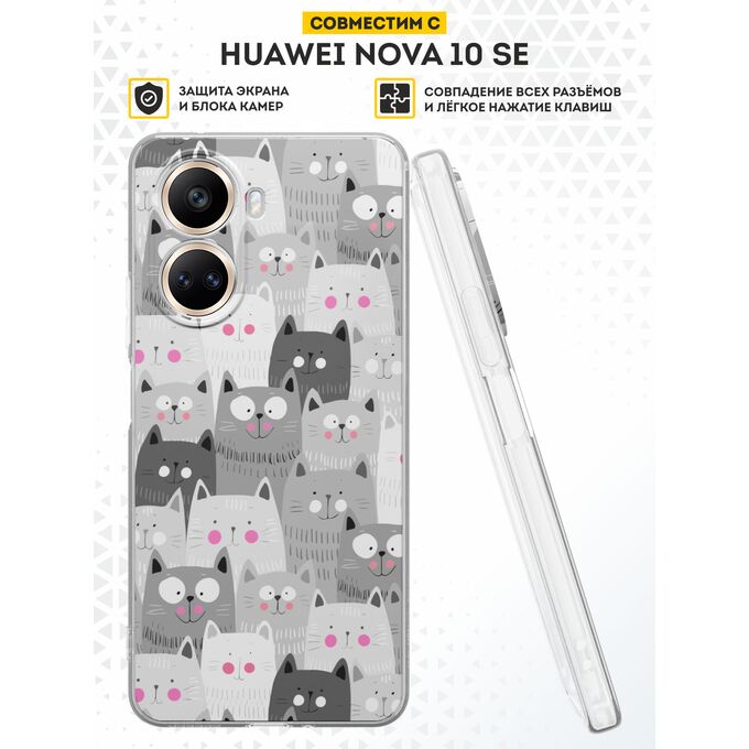 Силиконовый чехол DesignOnCase для Huawei Nova 10 SE / на Хуавей Нова 10 СЕ, Довольные коты