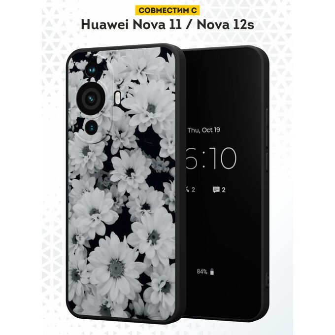 Силиконовый чехол DesignOnCase для Huawei Nova 11 / Nova 12s (Хуавей Нова 11 и Нова 12с), Ромашки ч/б