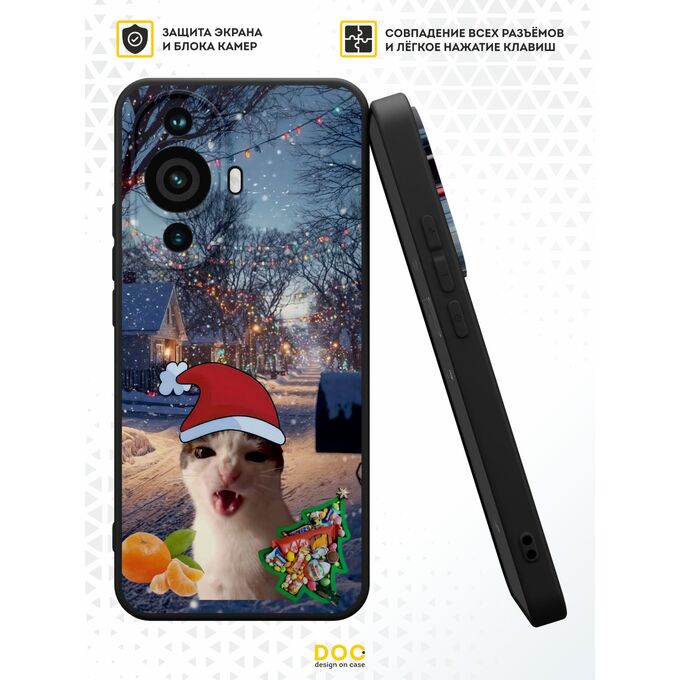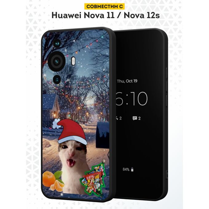 Силиконовый чехол DesignOnCase для Huawei Nova 11 / Nova 12s (Хуавей Нова 11 и Нова 12с), с принтом Новогодний, Мемный кот, Мандарины