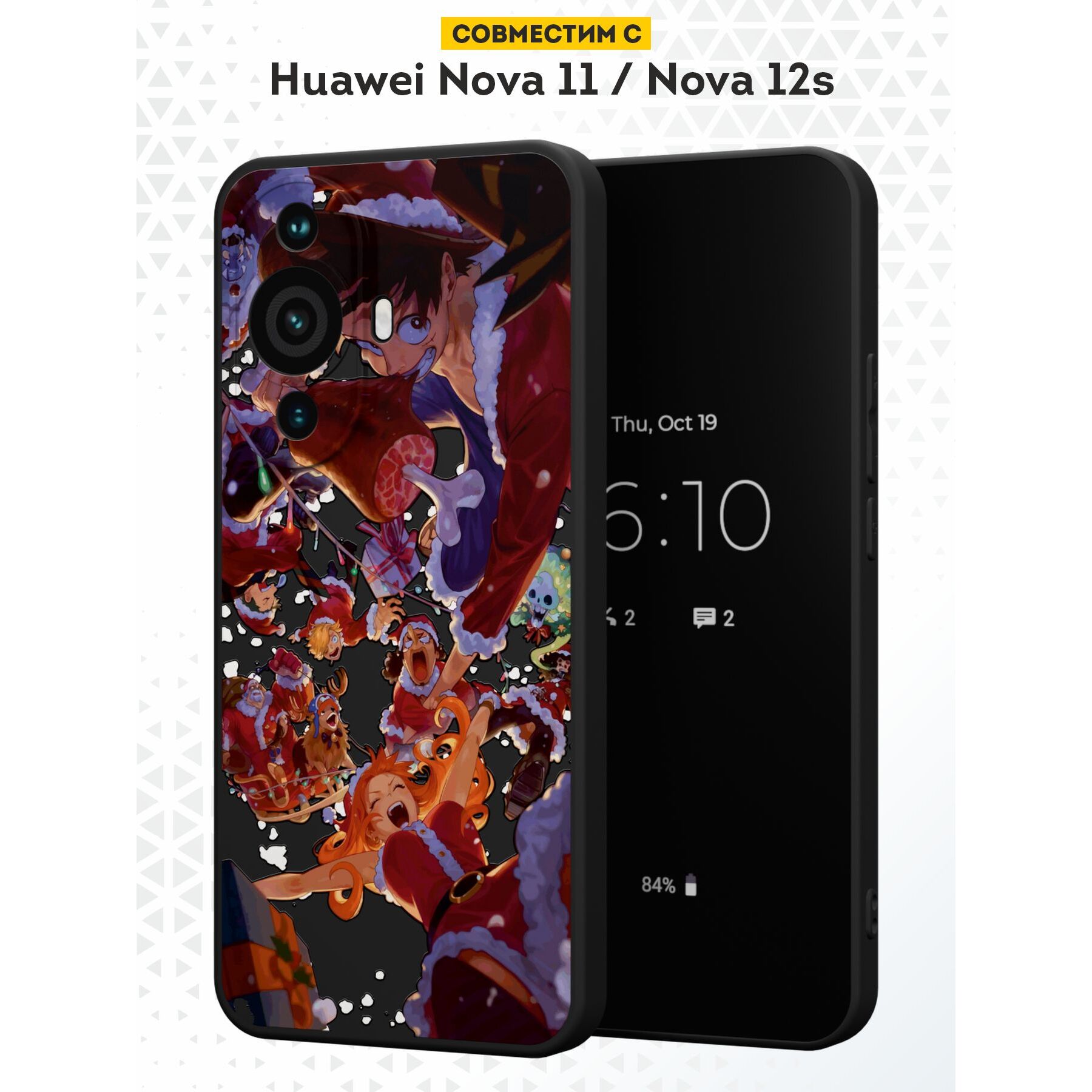 Силиконовый чехол DesignOnCase для Huawei Nova 11 / Nova 12s (Хуавей Нова 11 и Нова 12с), с принтом Новогодний, Ван Пис, One piece, Аниме