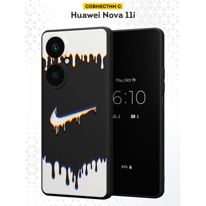 Силиконовый чехол DesignOnCase для Huawei Nova 11i (Хуавей Нова 11 Ай), Черно-белый найк