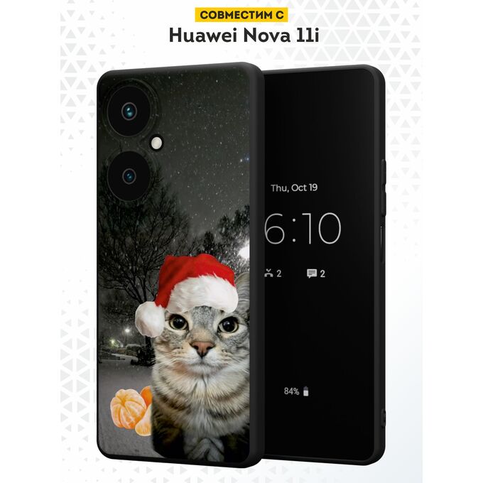 Силиконовый чехол DesignOnCase для Huawei Nova 11i (Хуавей Нова 11 Ай), с принтом Новогодний, Мемный кот, Мандарины