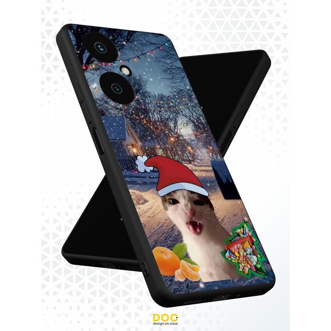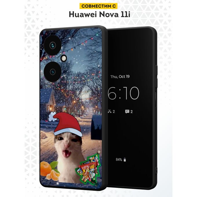 Силиконовый чехол DesignOnCase для Huawei Nova 11i (Хуавей Нова 11 Ай), с принтом Новогодний, Мемный кот, Мандарины
