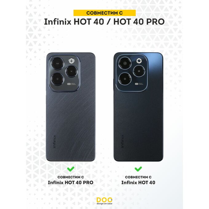 Силиконовый чехол для смартфона Infinix HOT 40 / HOT 40 PRO - это стильное дополнение и надежная защита для вашего смартфона. Изготовлен из прочного силикона, который устойчив к потертостям, царапинам, и другим повреждениям, что даёт вам возможность на долгий срок службы устройства. Дизайн чехла придется по вкусу самым требовательным покупателям. Наша команда дизайнеров создает уникальные принты и рисунки, которые не оставят равнодушными окружающих. Благодаря износостойким краскам и лакам, он всегда будет выглядеть свежим и новым даже после длительной эксплуатации. Особенностью чехла от бренда DesignOnCase является его идеальное прилегание к смартфону, повторяющее его контуры. Это обеспечивает не только эстетичный вид, но и полный доступ к функциям и портам вашего телефона.