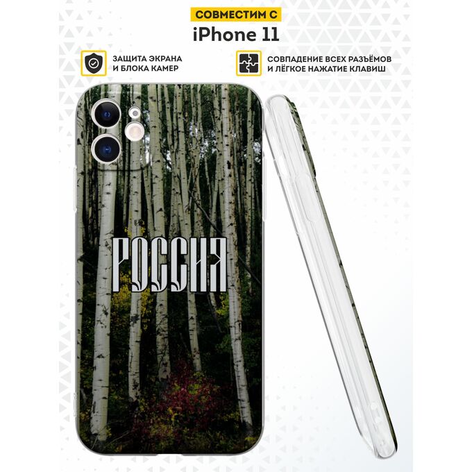 Силиконовый чехол DesignOnCase для iPhone 11 (Айфон 11), Россия и берёзы