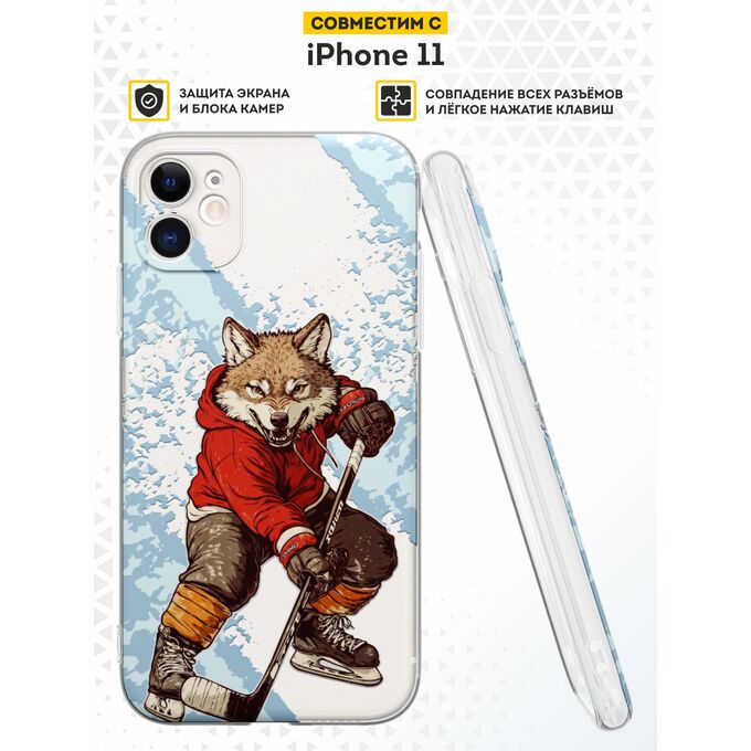 Силиконовый чехол DesignOnCase для iPhone 11 (Айфон 11), Волк хоккеист