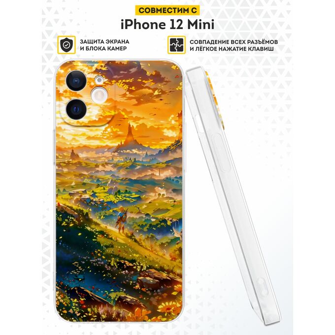 Силиконовый чехол DesignOnCase для iPhone 12 mini (Айфон 12 мини), Зельда пейзаж