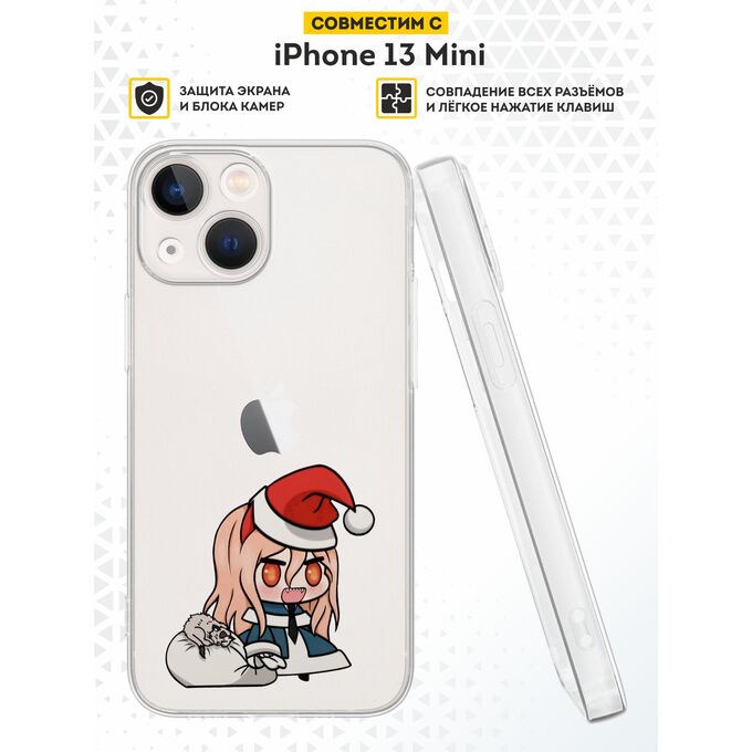 Силиконовый чехол DesignOnCase для iPhone 13 mini (Айфон 13 мини), с принтом Новогодний, Человек-бензопила, Аниме, Пауэр