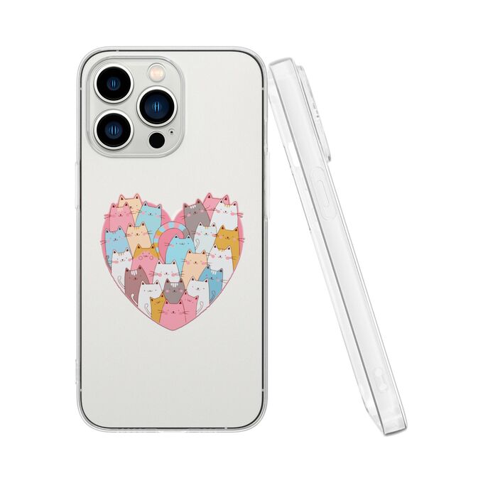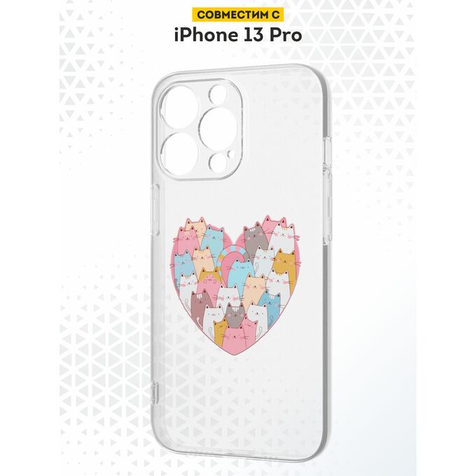 Силиконовый чехол DesignOnCase для iPhone 13 Pro (Айфон 13 Про), Сердце и коты