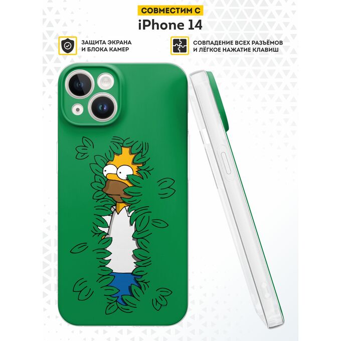 Силиконовый чехол DesignOnCase для iPhone 14 (Айфон 14), Гомер в кустах