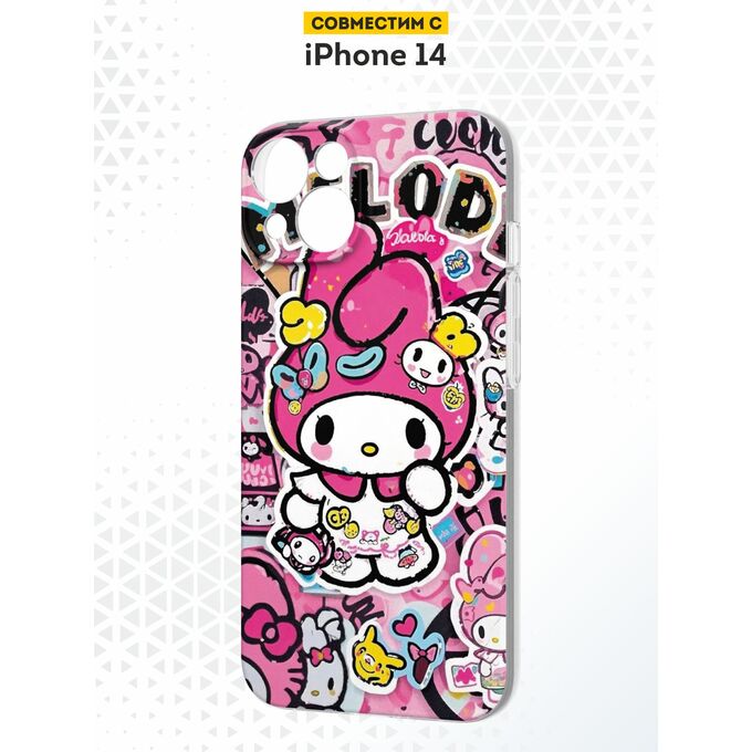 Силиконовый чехол DesignOnCase для iPhone 14 (Айфон 14), Китти коллаж