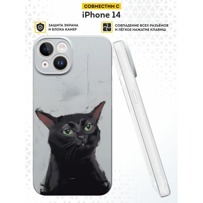 Силиконовый чехол DesignOnCase для iPhone 14 (Айфон 14), Кот собеседник