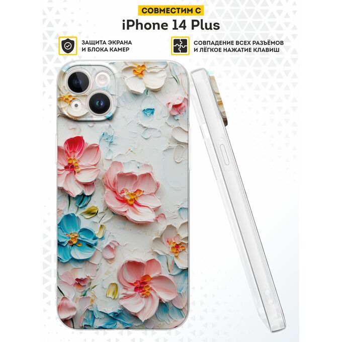 Силиконовый чехол DesignOnCase для iPhone 14 Plus (Айфон 14 Плюс), Цветы маслом