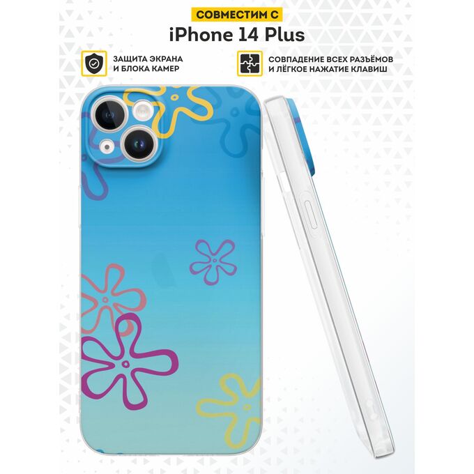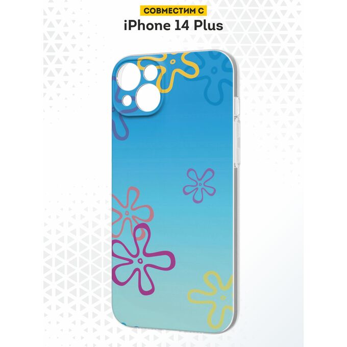 Силиконовый чехол DesignOnCase для iPhone 14 Plus (Айфон 14 Плюс), Губка Боб фон