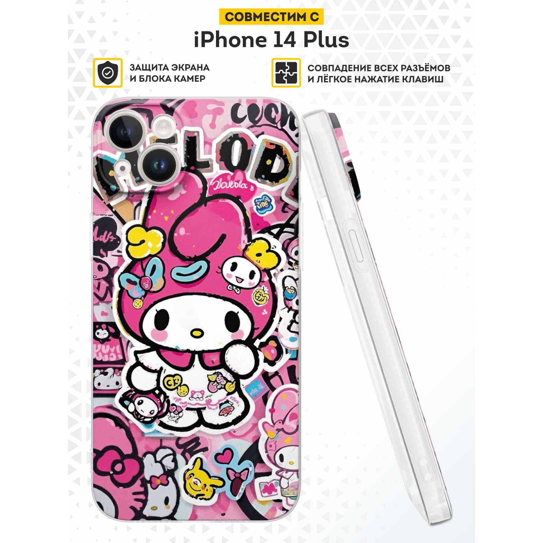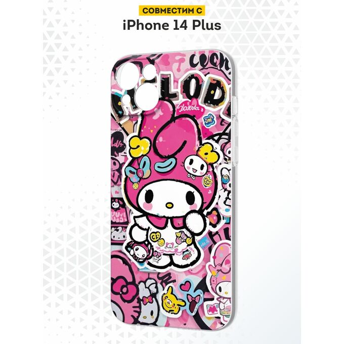 Силиконовый чехол DesignOnCase для iPhone 14 Plus (Айфон 14 Плюс), Китти коллаж
