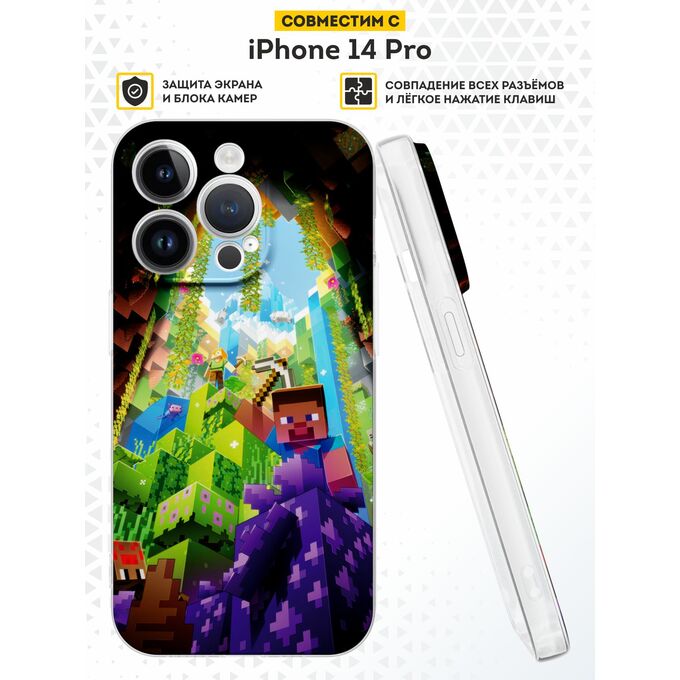 Силиконовый чехол DesignOnCase для iPhone 14 Pro (Айфон 14 Про), Майнкрафт кирка