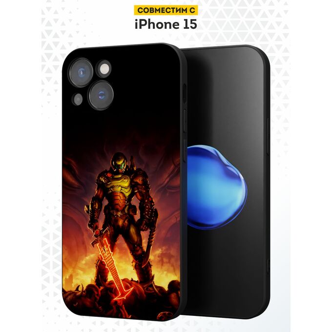 Силиконовый чехол DesignOnCase для iPhone 15 (Айфон 15), Doom