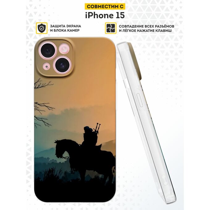 Силиконовый чехол DesignOnCase для iPhone 15 (Айфон 15), Геральт на Плотве