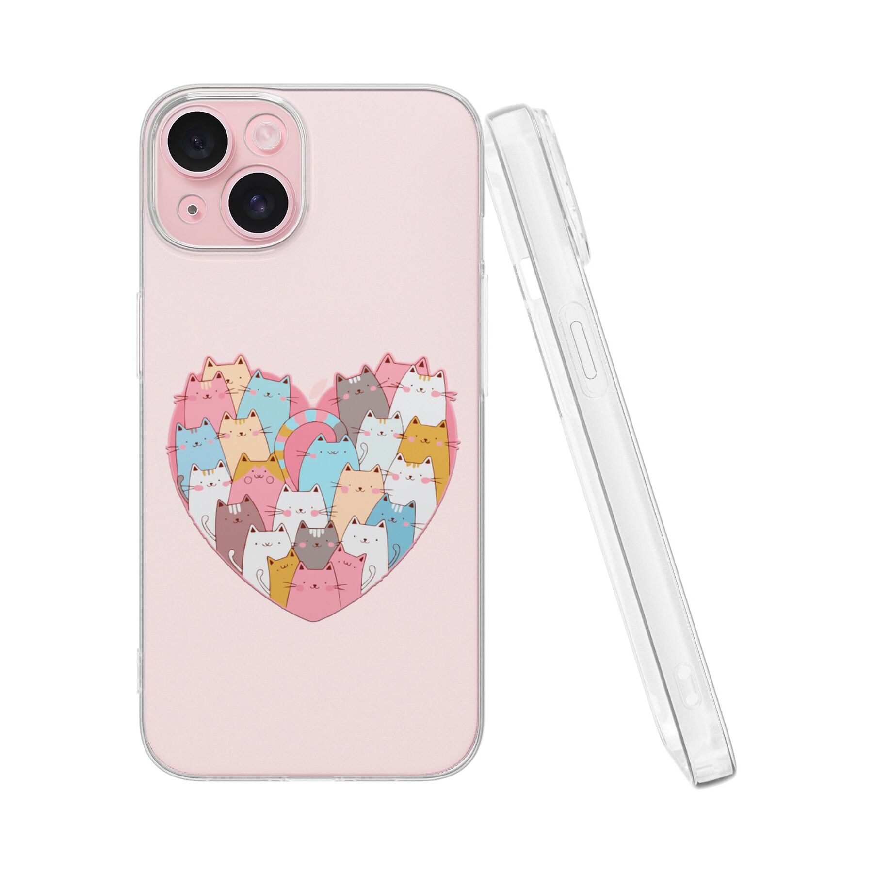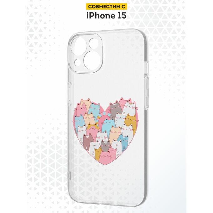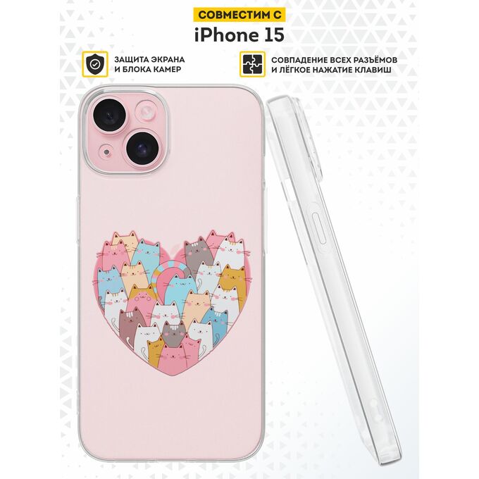 Силиконовый чехол DesignOnCase для iPhone 15 (Айфон 15), Сердце и коты