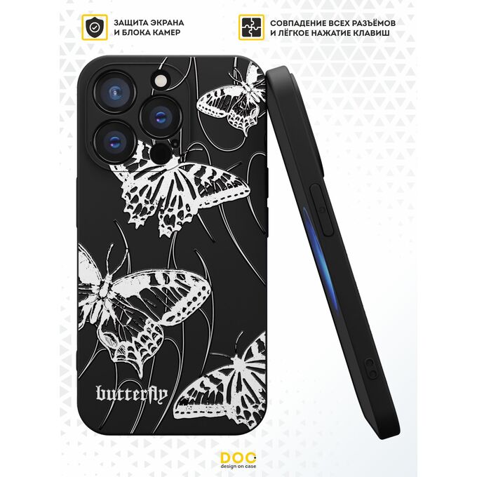 Силиконовый чехол DesignOnCase для iPhone 15 Pro (Айфон 15 Про), Бабочки на черном