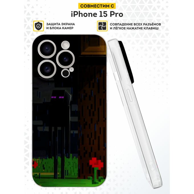 Силиконовый чехол DesignOnCase для iPhone 15 Pro (Айфон 15 Про), Майнкрафт эндер мен