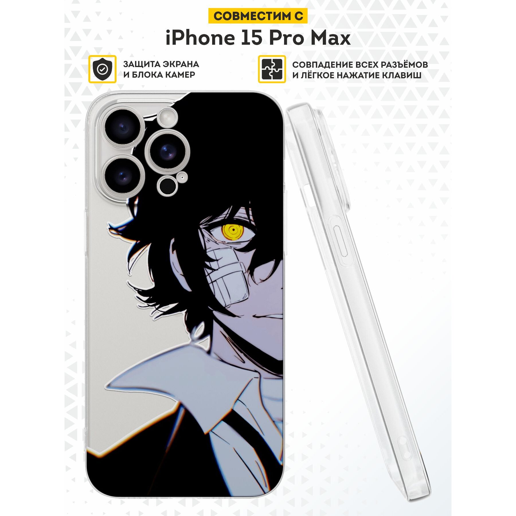 Силиконовый чехол DesignOnCase для iPhone 15 Pro Max (Айфон 15 Про Макс), Осаму Дадзай