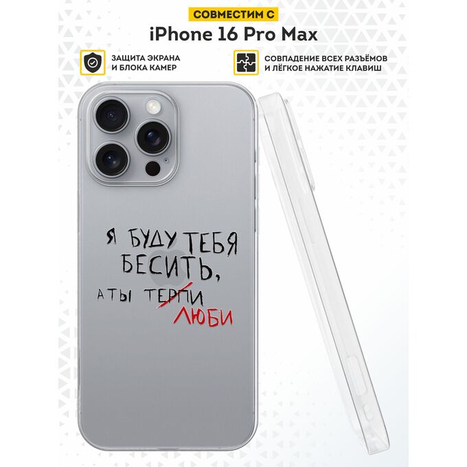 Силиконовый чехол DesignOnCase для iPhone 16 Pro Max (Айфон 16 Про Макс), А ты люби