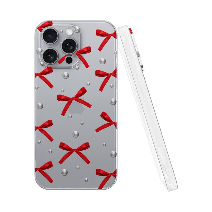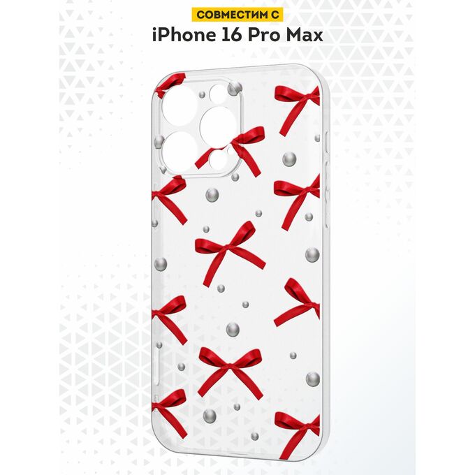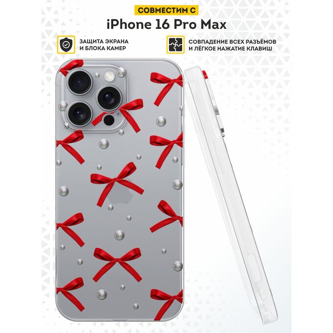 Силиконовый чехол DesignOnCase для iPhone 16 Pro Max (Айфон 16 Про Макс), Красные бантики