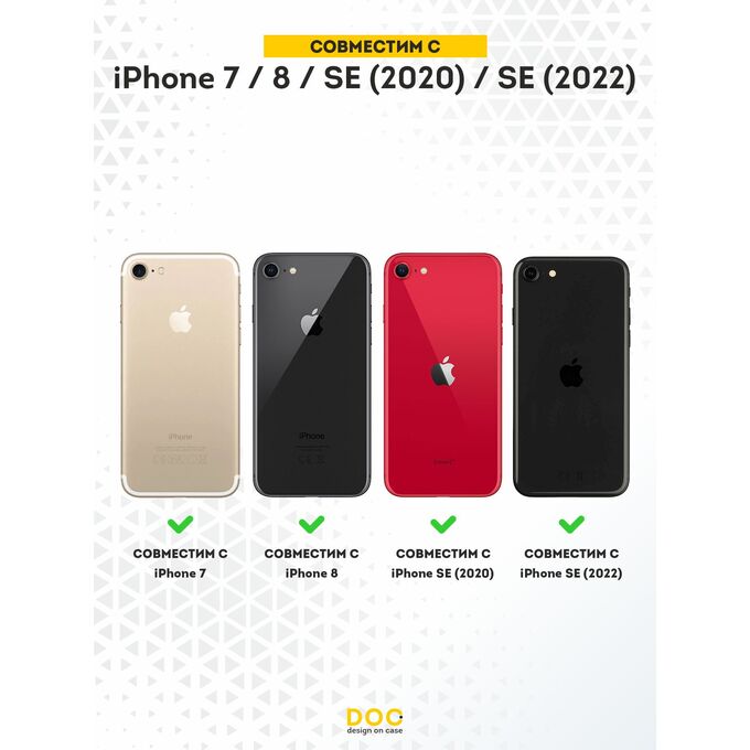 Чехол для смартфона iPhone 7/iPhone 8/iPhone SE (2020)/iPhone SE (2022) - неотъемлемый аксессуар каждого современного человека. Премиальные износостойкие краски и лаки, качественные материалы изделия, японское оборудование и контроль качества производства - это то, что позволяет нам выгодно выделяться среди конкурентов и производить не только красивые, но тактильно приятные чехлы для Айфон 7 8 СЕ 2020, которые долгое время не теряют первоначального вида.