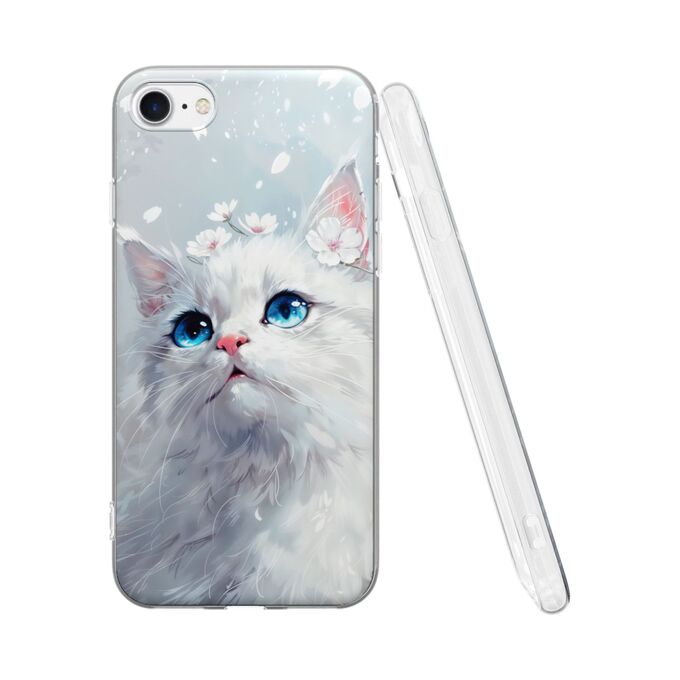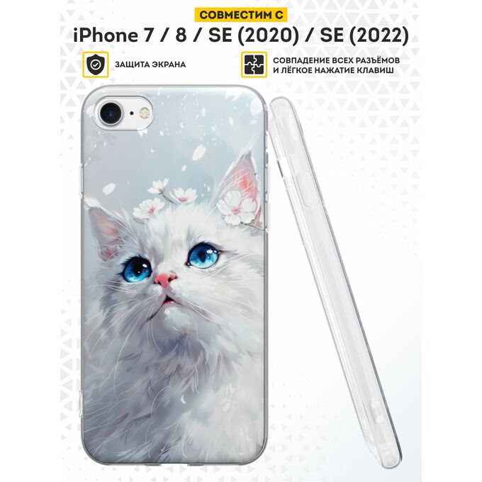 Силиконовый чехол DesignOnCase для iPhone 7/8/SE 2020 (Айфон 7 8 СЕ 2020), Белый кот