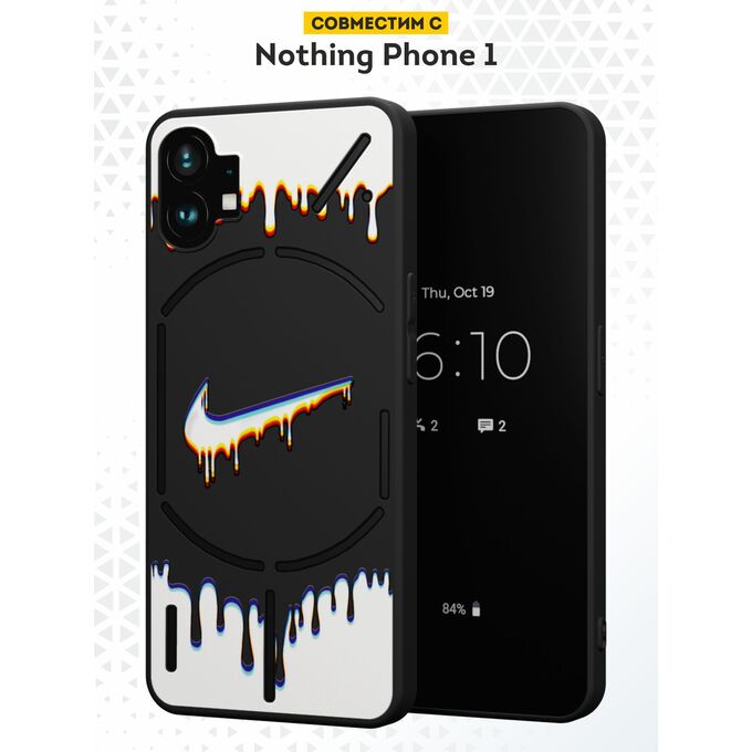 Силиконовый чехол DesignOnCase для Nothing Phone 1 (Насинг Фон 1), Черно-белый найк