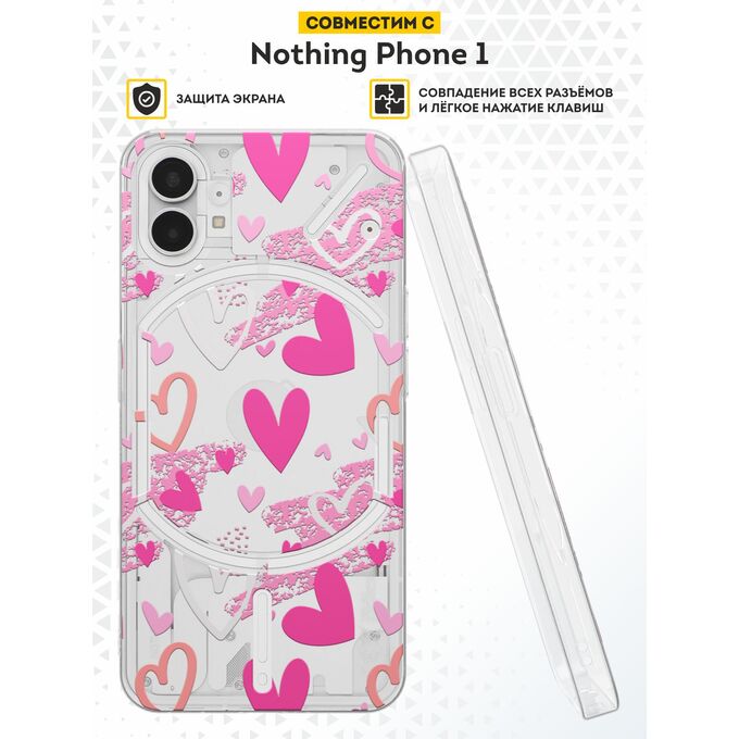 Силиконовый чехол DesignOnCase для Nothing Phone 1 (Насинг Фон 1), Разноцветные сердца
