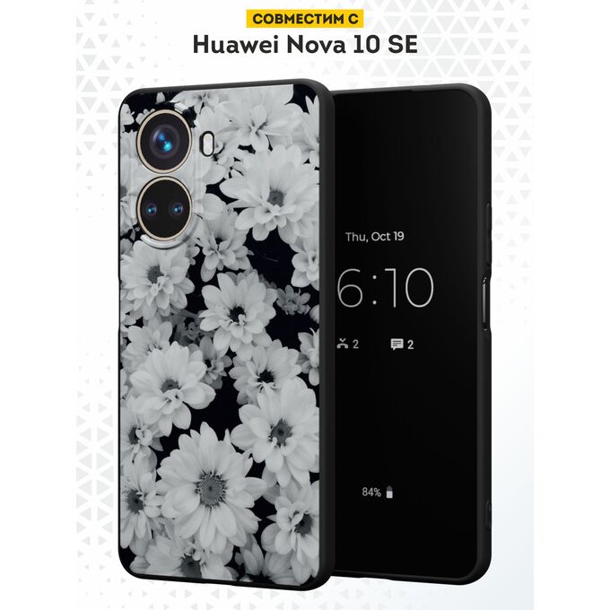 Силиконовый чехол DesignOnCase для Nova 10 SE (Нова 10 СЕ), Ромашки ч/б