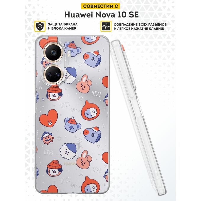 Силиконовый чехол DesignOnCase для Nova 10 SE (Нова 10 СЕ), с принтом Новогодний, БТС, BTS, к-поп, BT21