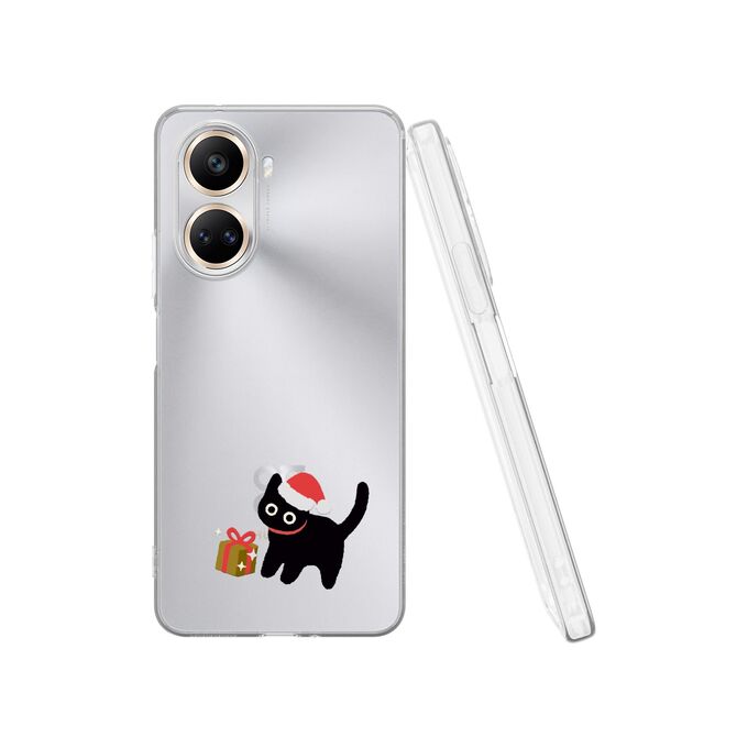 Силиконовый чехол DesignOnCase для Nova 10 SE (Нова 10 СЕ), с принтом Новогодний, Черный кот, Подарок